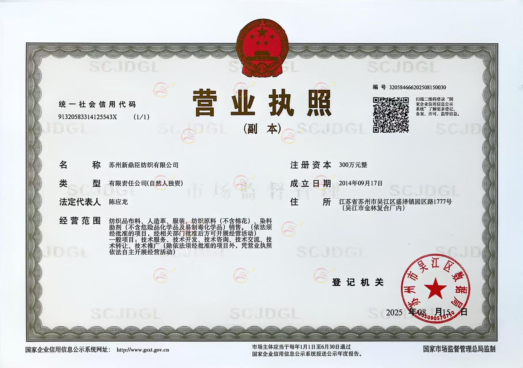苏州新鼎臣纺织品有限公司成立于2014年,是一家集研发、生产、销售、服务于一体的工作服和户外功能面料供应企业。 主要经营各类高防水、高透湿、抗静电、抗紫外线、防蚊虫、抗菌防螨、阻燃工装、荧光劳保类工装,无氟防水等功能性面料;各面料均能通过Oeko-Tex Standard100,EN20471和RIS-3279-TOM及EN343等测试, 市场定位于欧、美及东南亚国家,。 我司长期与德司达、亨斯曼、鲁道夫、鼎基、氢特等知名公司企业合作,服务于欧、美、东南亚及国内许多知名品牌。 我们始终坚持“质量第一,客户第一”的生产原则。严格把控,做到每匹布测试、检验、留档、可追溯,一年内随时提供数据与布样。尊重客人选择,全力以赴促进生产,跟踪服务到位,以稳定优质的产品质量和服务赢得了国内外市场的一致好评。 我们是一家年轻的企业,我们充满活力,朝气蓬勃;我们自由民主、团结和睦,我们会用努力拼搏、积极进取的精神风貌创造出更加灿烂辉煌的新鼎臣。 |