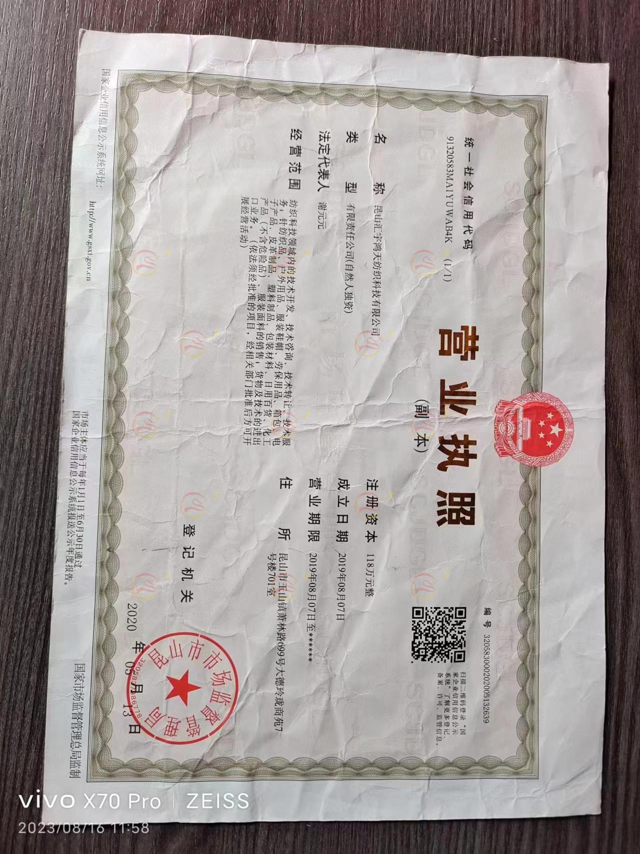 昆山汇宇鸿天纺织科技有限公司