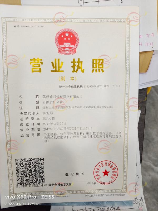 苏州妙回修布修色有限公司